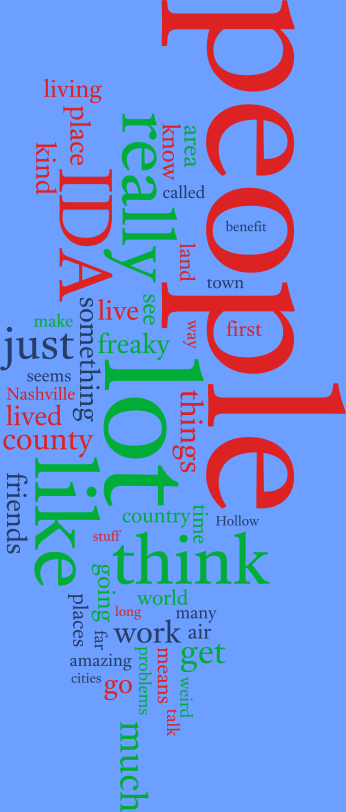 The reason I was saying that is because I think that, living in a holler like we do, it kind of affects personalities and social group dynamics. That's one of the challenges.